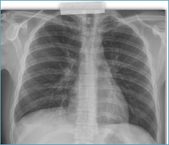 Figure 3.Chest X-ray. Minimal opacities in the lower third of the right hemithorax, with otherwise normal findings.